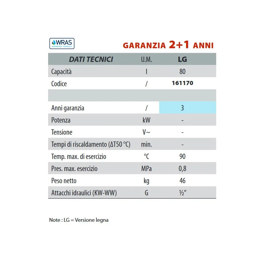 Scaldabagno scaldacqua a legna mod. LG 80 litri (versione solo legna) FU000184