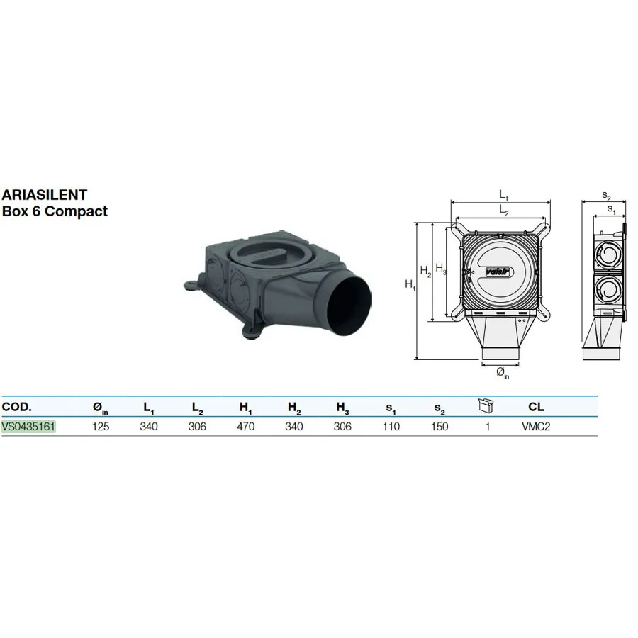 Valsir AriaSilent Box 6 Compact unito agli altri componenti AriaSilent concorre alla formazione del sistema di ventilazione meccanica controllata AriaSilent (completo) per come ideato da Valsir.
