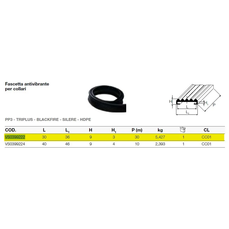 Fascetta antivibrante per collari, L. 30 mm (prezzo e quantità riferita al metro) VS0399222