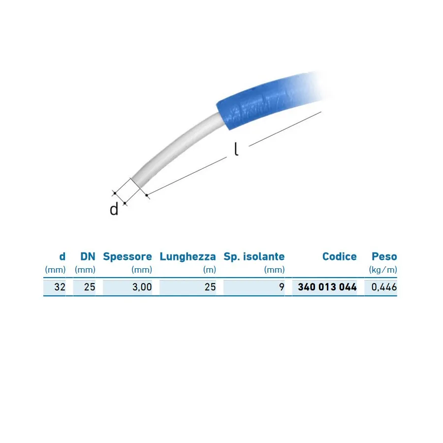 Tubo SANIPOL isolato - azzurro - ø32 - rotolo 25 metri (prezzo al metro - minimo acquistabile 25 metri) 1147384