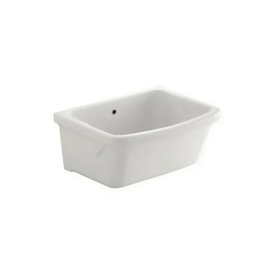 Lavatoio Geberit Publica 500.886.00.1, in gres fine porcellanato, colore bianco, 50 cm lunghezza, 60 cm larghezza, 38.5 cm altezza.
