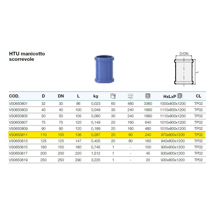 HTU manicotto scorrevole ad innesto 110 mm - gamma Triplus