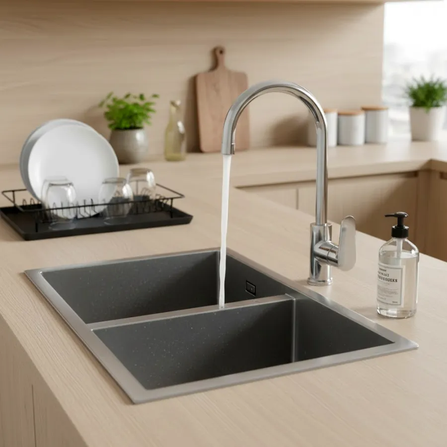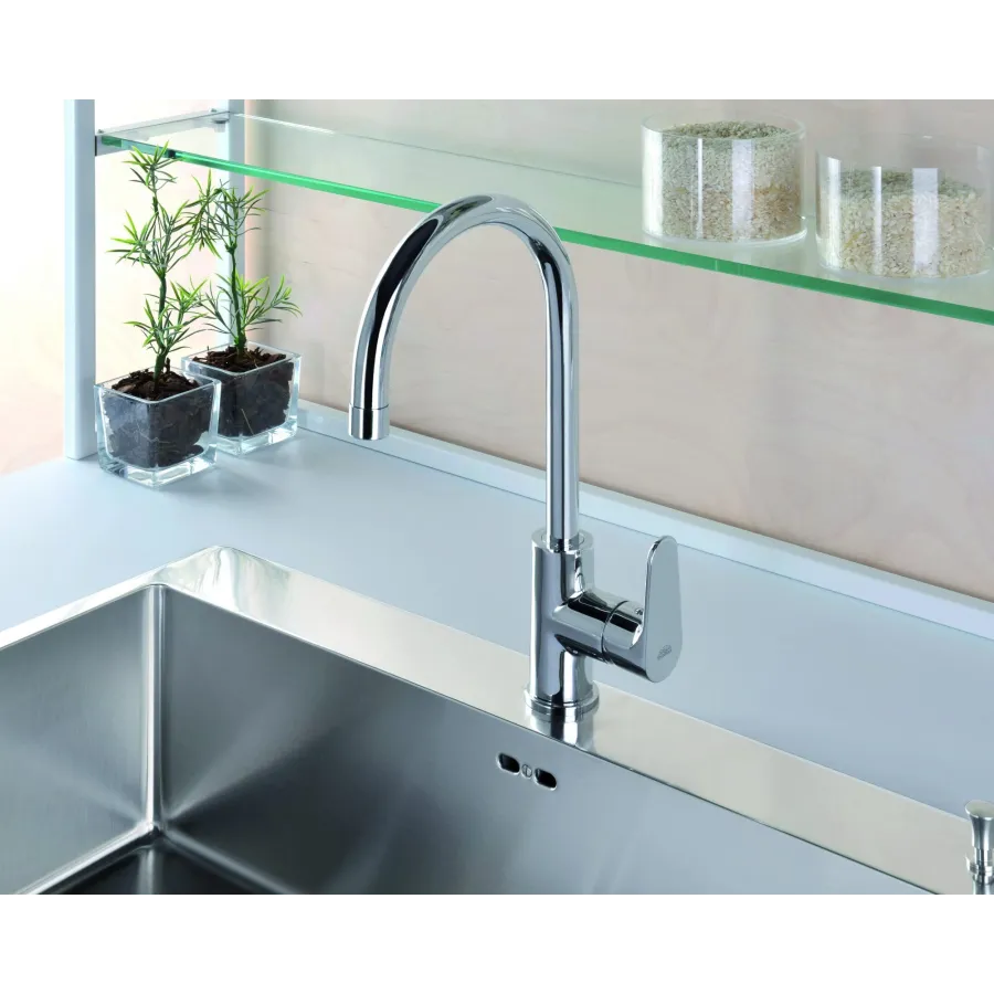 Miscelatore lavello monoforo con canna orientabile completo di: