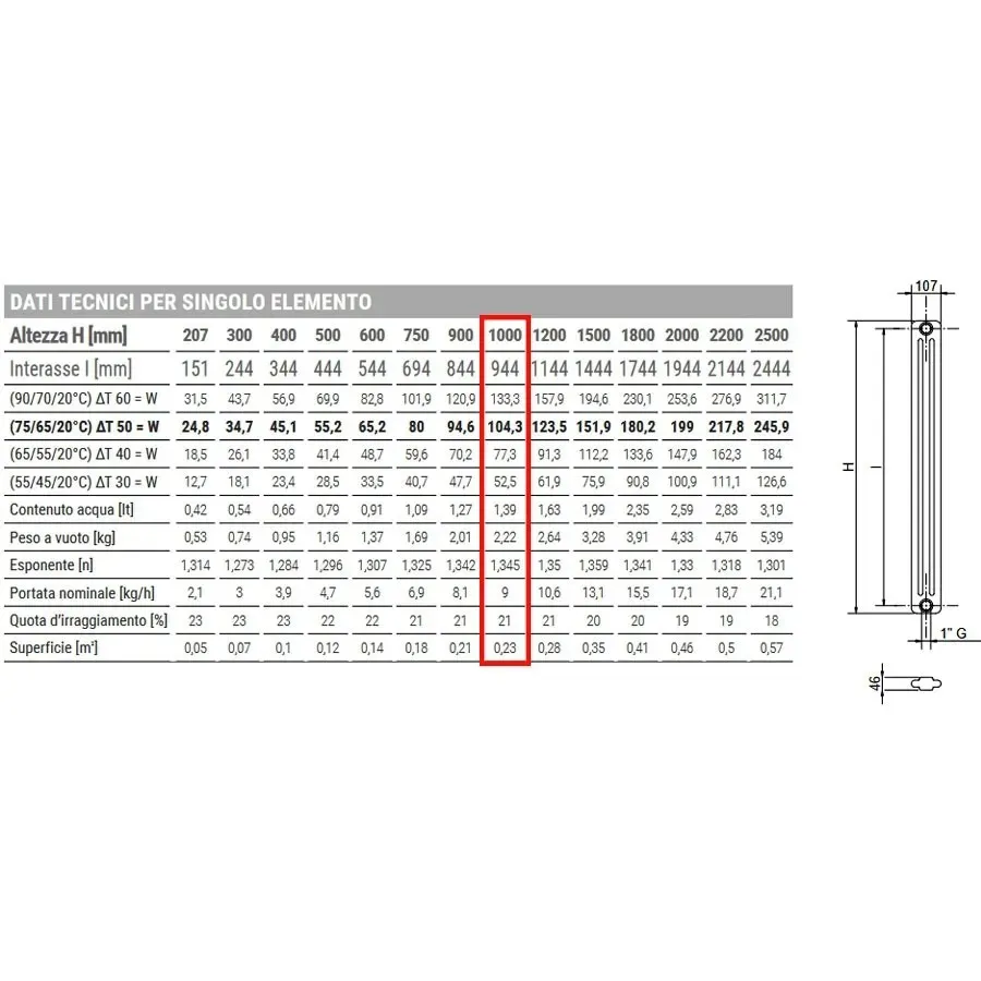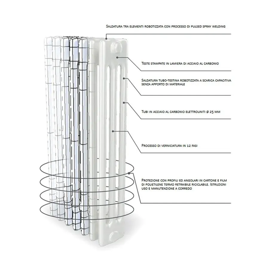Ardesia radiatore tubolare 3 colonne h.1000 - 27 elementi - colore bianco RAL9016 - completo di tappo cieco e riduzioni da 1/2" AR3271000002R02A