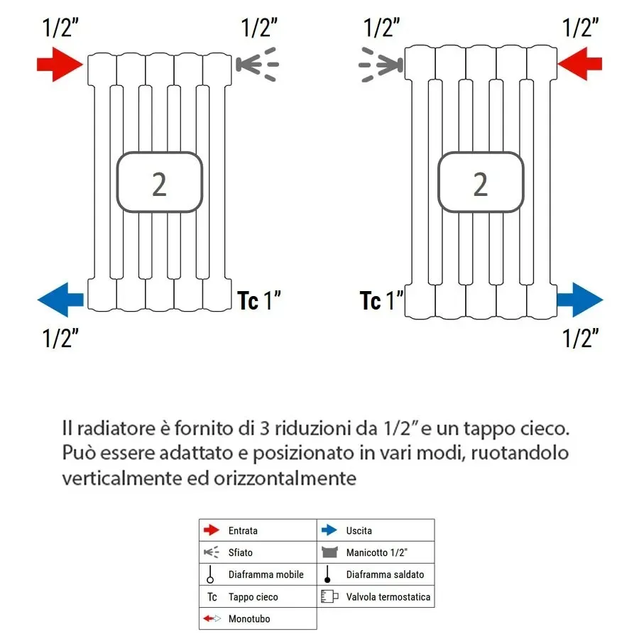 Completo di tappo cieco e riduzioni da 1/2"