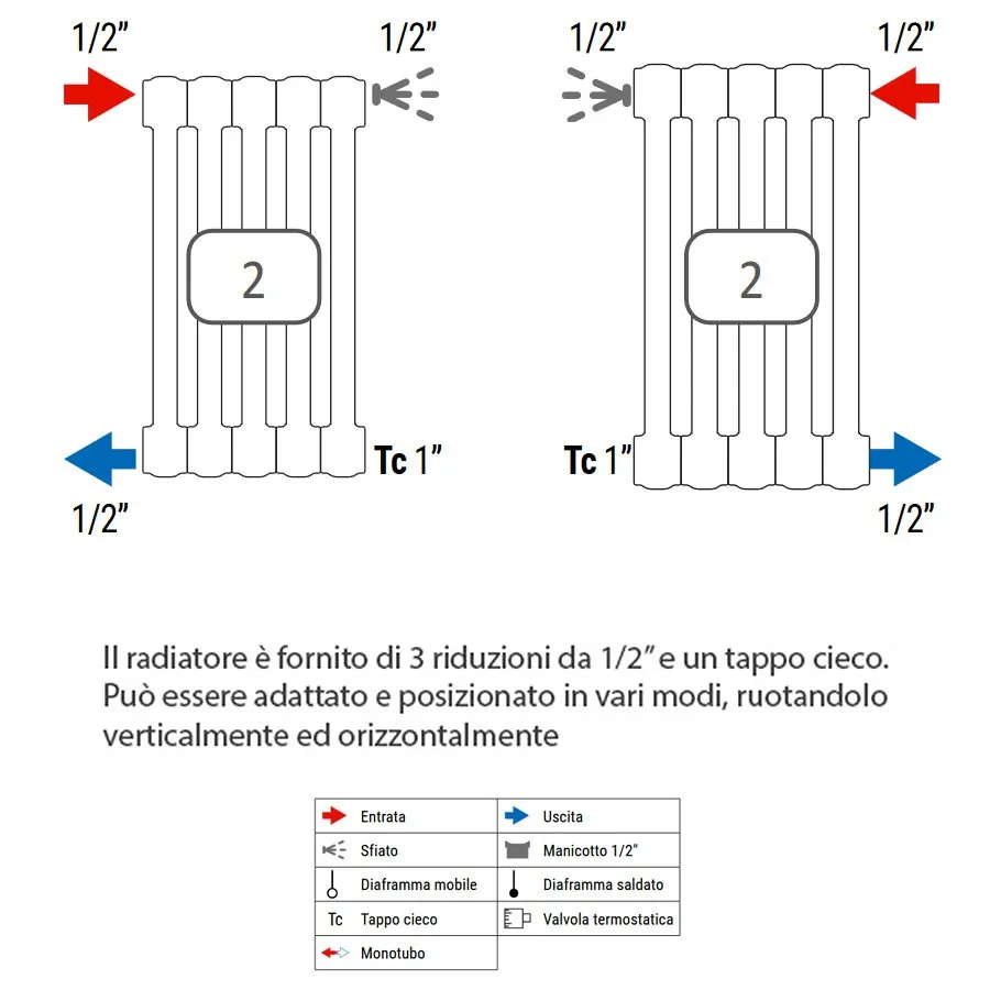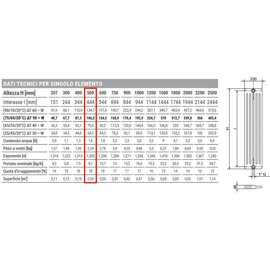 Ardesia radiatore tubolare 6 colonne 17 elementi h.500 - colore bianco RAL9016 - completo di tappo cieco e riduzioni da 1/2" 3541700058457