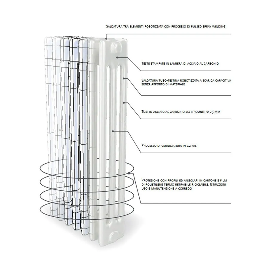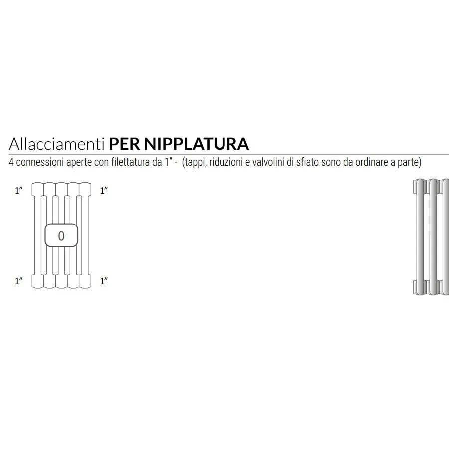 Ardesia radiatore tubolare 3 colonne 6 elementi h.2000 - colore bianco RAL9016 - 4 connessioni aperte con filettatura da 1" 3541706103125