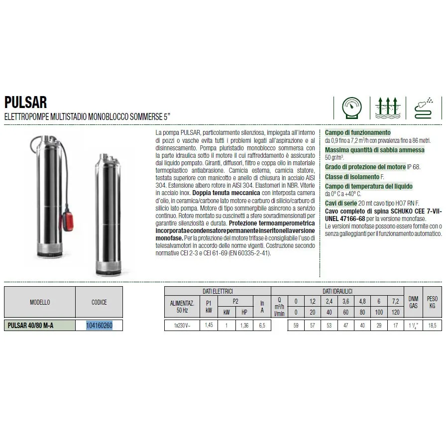 Dab Pumps PULSAR 40/80 M-A Pompa multistadio monoblocco sommersa da 5" 60210509