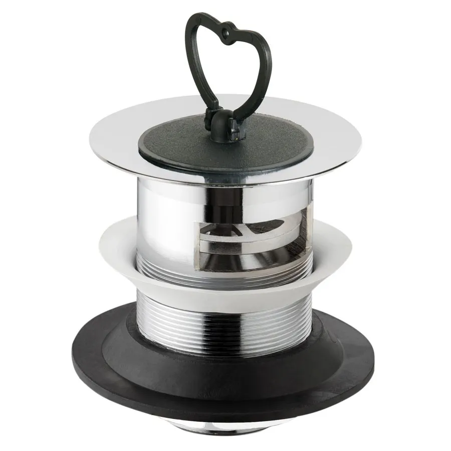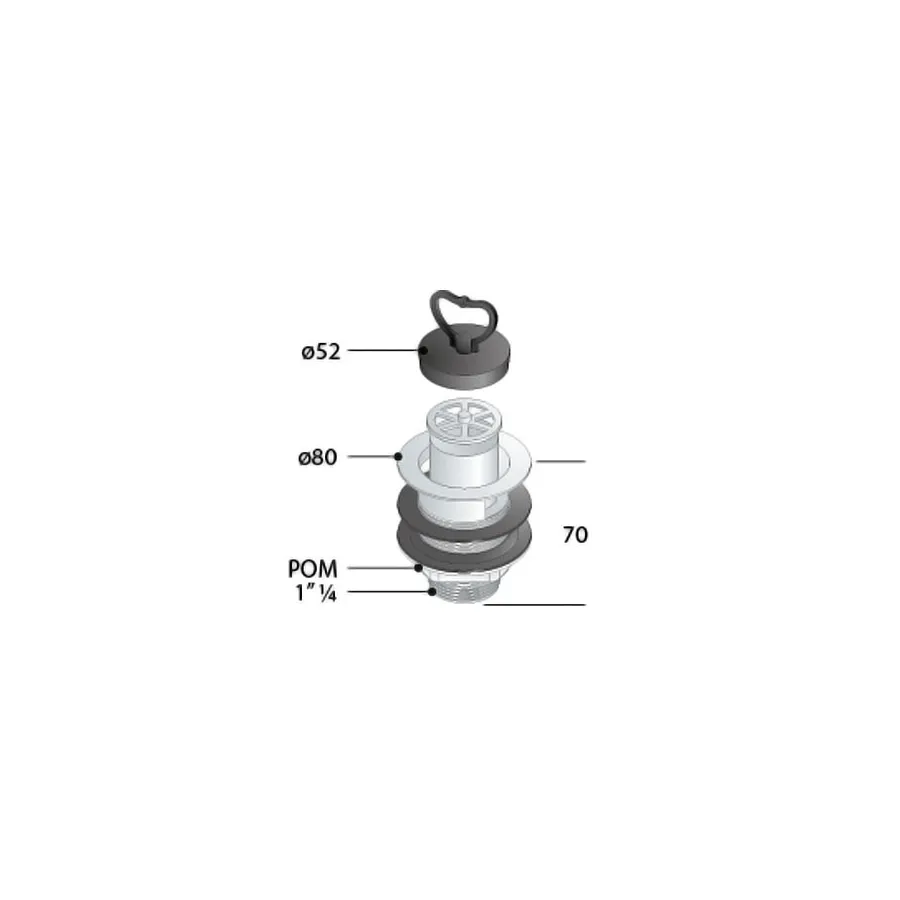 Piletta sifonata in ottone cromato per lavello con foro ø60 - Misura ø80 × 1"1/4 - con tappo con maniglia --37.1255