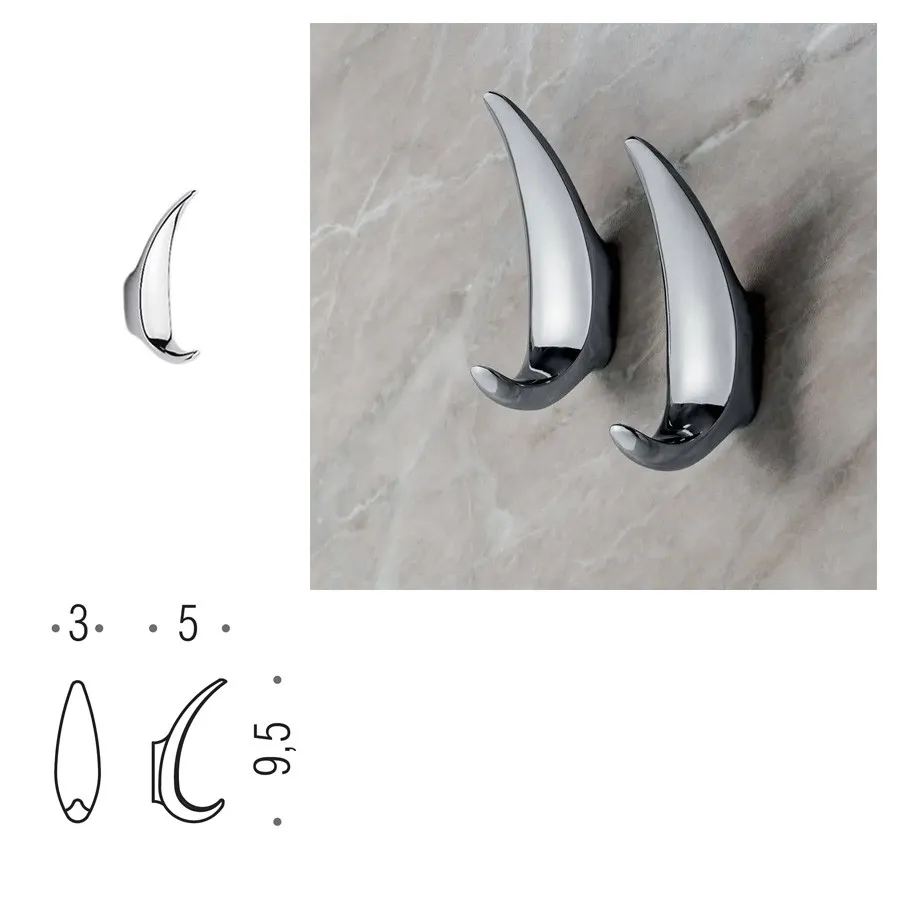 Appendino a muro Colombo Design Melò BRA17-CR, disegnato da Ambrogio Rossari, in ottone, colore cromo, fissaggio con tasselli fischer, 5 cm lunghezza, 3 cm larghezza, 9.5 cm altezza