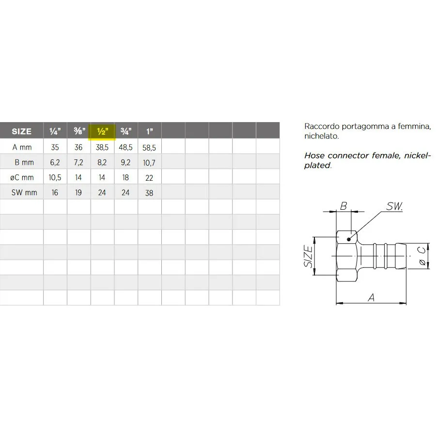 Raccordo portagomma a femmina 1/2", nichelato G0659N04 - - ENOLGAS - - G0659N04