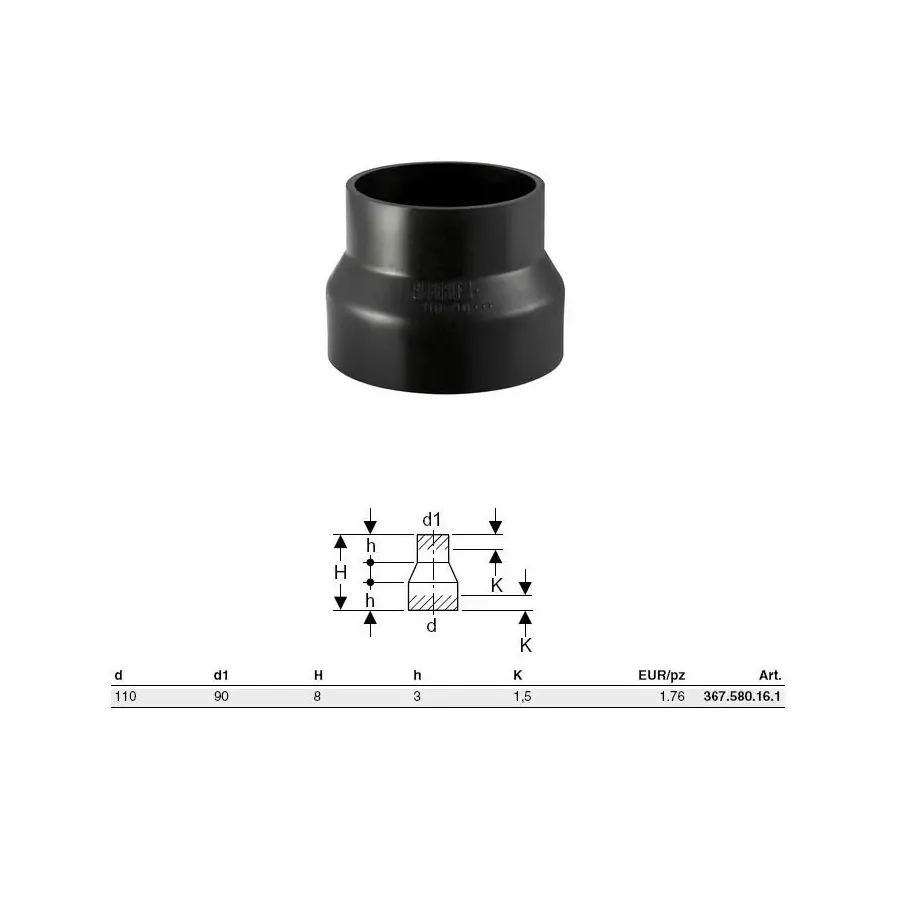 Riduzione concentrica PE-HD ø110 x 90mm a saldare 367.580.16.1