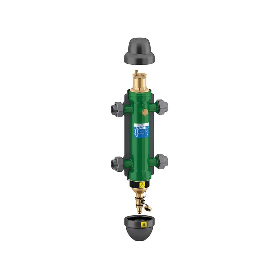 Separatore idraulico multifunzione. Con coibentazione. Completo di: - separatore; - disaeratore; - defangatore; - anello magnetico; - rubinetto di scarico con portagomma. attacco: G 2" (ISO 228-1) F, bocchettone. Pressione massima di esercizio: 10 bar. Campo di temperatura del fluido: 0-100 °C. Finitura: verniciato. Portata massima consigliata: 8,5 m3/h. Materiale: acciaio.