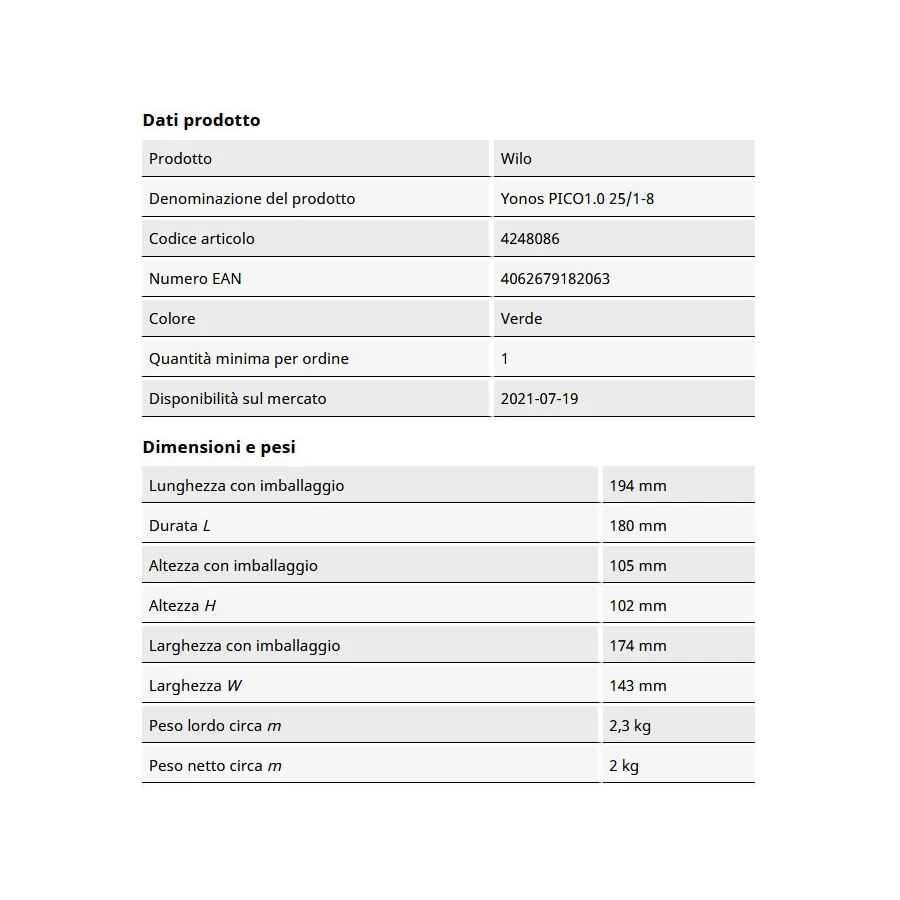 Yonos PICO1.0 25/1-6 PN10 interasse 180 mm ø1"1/2 Circolatore standard singolo a rotore bagnato con attacchi filettati 4215517