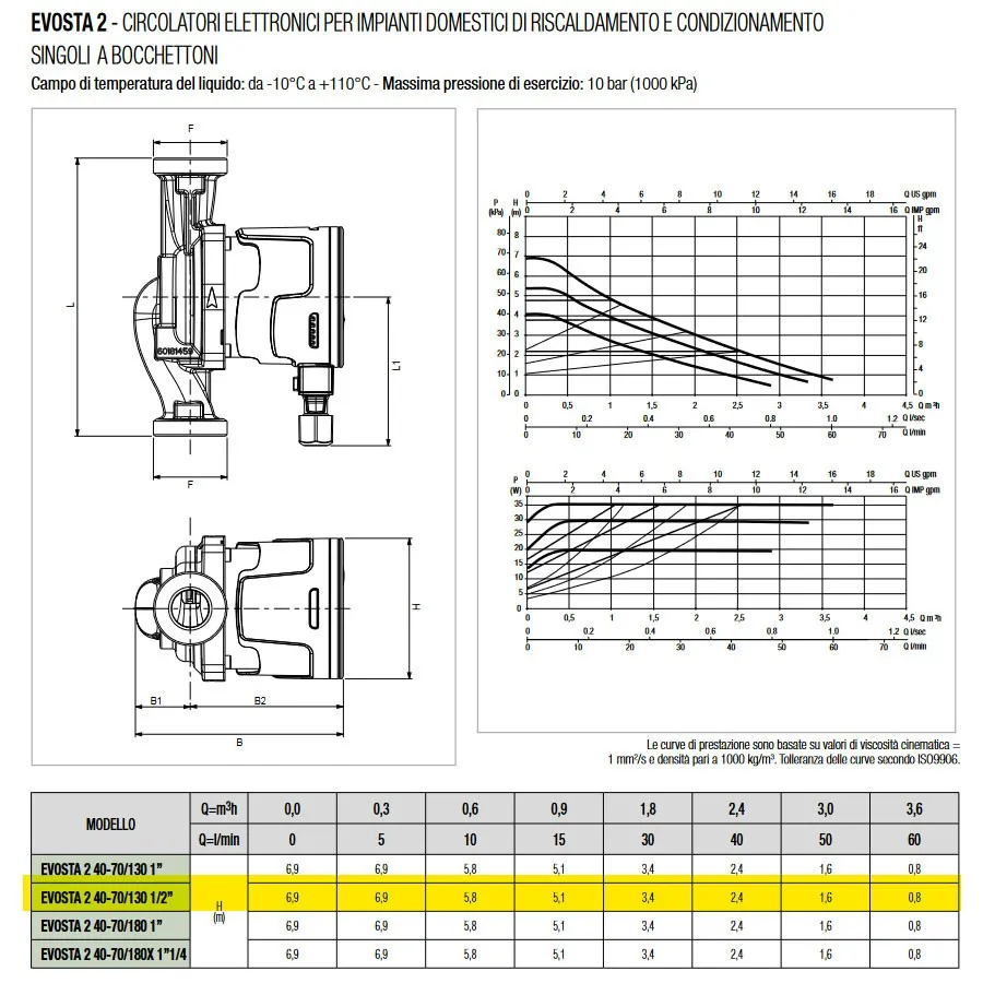 Dab Pumps EVOSTA 2 40-70/130 (1") Circolatore elettronico a rotore bagnato per ricircolo acqua in impianti di riscaldamento e condizionamento, bocche filettate DN25 (G 1" 1/2), portata max 3.6 m³/h - prevalenza max 6.9 m