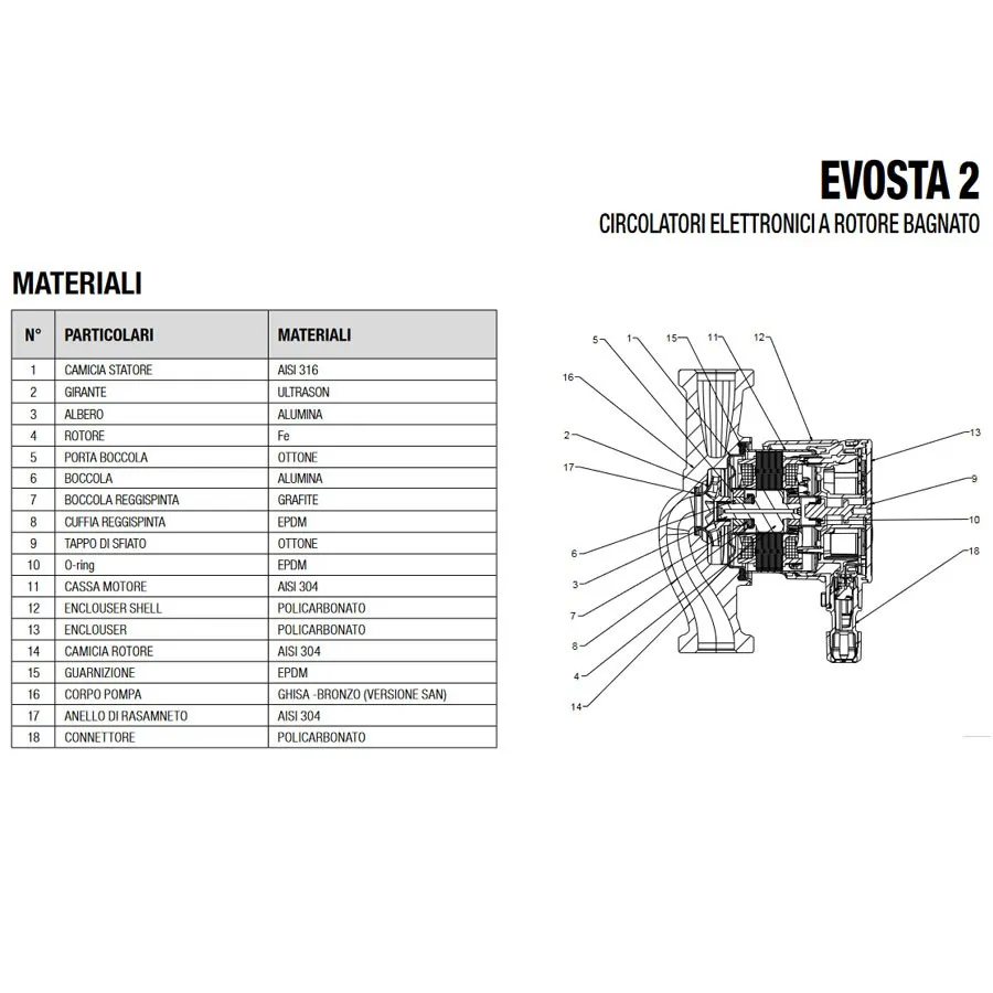 Evosta 2 ha il motore sincrono a magnete permanente e un'elettronica con inverter che adatta automaticamente le prestazioni alle richieste dell'impianto consentendo un risparmio energetico e proteggendo dai colpi d'ariete.