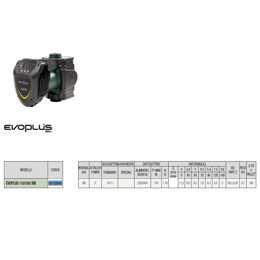 Dab Pumps EVOPLUS SMALL 110/180 XM Circolatore elettronico a rotore bagnato per piccoli impianti ad uso abitativo e commerciale 60231358