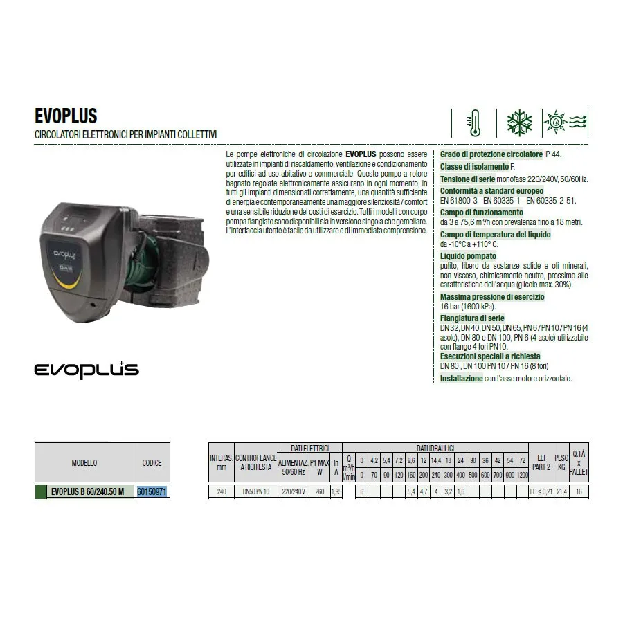 Dab Pumps EVOPLUS B 60/240.50 M Circolatore elettronico a rotore bagnato per impianti ad uso abitativo e commerciale 60220911