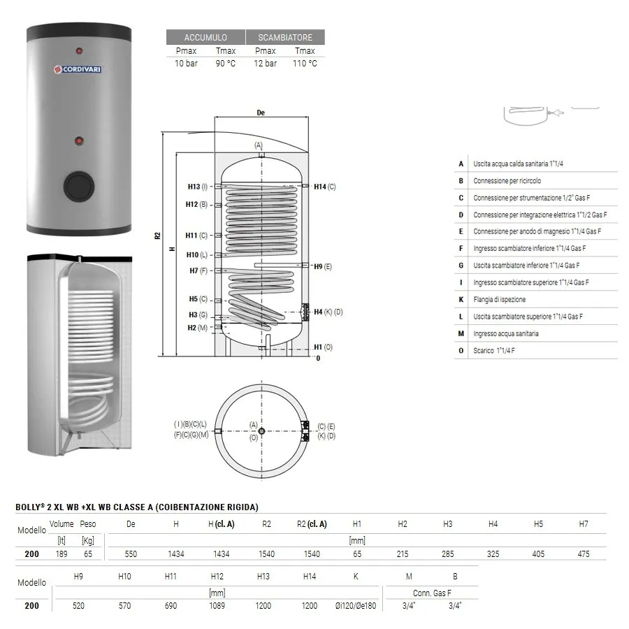 Bollitore BOLLY 2 XL WB 200 V003 - 200 litri per produzione A.C.S. con 2 scambiatori fissi per pompe di calore 3134162320001